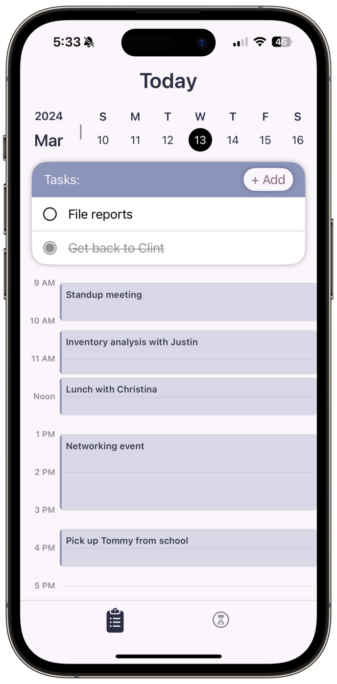 Foca integrates with your existing Apple calendar to display tasks and events in the same view.